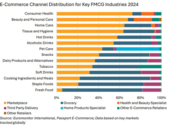 2025 raporları, FMCG’de e-ticaret satış trafiğinin büyük bir kısmının pazaryerleri üzerinden elde ettiğini gösteriyor — bu kanallar artık sadece satış değil, ürün keşfi ve marka tanınırlığı için de ana platform konumundadır.