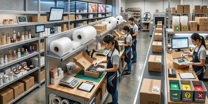 In der Praxis heißt das: Retouren werden in separaten, sauberen Bereichen bearbeitet, sie kommen nicht direkt mit normalen Lagerwaren in Kontakt und es gibt klare Abläufe für den Umgang mit offenen oder vermutlich benutzten Produkten.