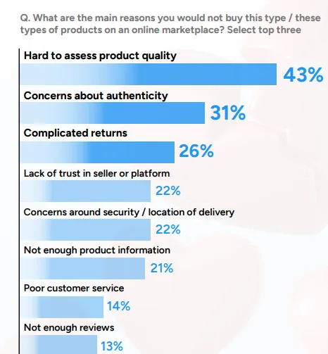 According to the research, 37% of consumers begin their online shopping journey on marketplaces. This shows that marketplaces are still strong “discovery hubs.” However, shopping behavior is no longer single-channel. Before making a purchase, consumers visit an average of three different marketplaces.