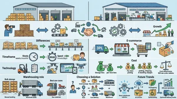 This complete comparison explains what each facility is, how they work in the supply chain, the key differences in function, cost, and technology, and how to decide which option fits your business.
